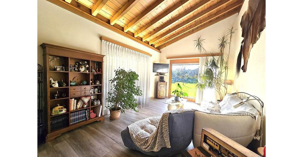 Il soggiorno è semplicemente incantevole, con un tetto in legno a vista che dona un’atmosfera calda e accogliente. Immagina di rilassarti davanti al camino ventilato, che diffonde un piacevole calore in tutta la stanza, creando la cornice ideale per le serate invernali o per semplicemente goderti una tranquilla giornata in casa.